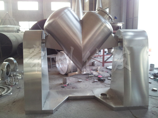 該機(jī)通過機(jī)械傳動(dòng),使不對稱的V型圓柱體內(nèi)的物料做往復(fù)翻動(dòng),達(dá)到均勻混合之目的。