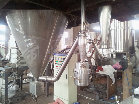 The machine is fully enclosed in color, with all components made of stainless steel and equipped with a three-pole purification device. The filtered air meets the requirement of 100000 levels. The simplified and top parts are equipped with a cold wall device to ensure a wall temperature of<80 degrees Fahrenheit. The drying tower is equipped with an air brush scanning device. After being dried by this machine, the traditional Chinese medicine extract powder will not undergo coking and deterioration, greatly reducing the powder collection rate (over 95%), and will not produce mixing or wall sticking phenomena.