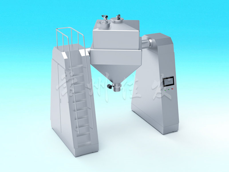 This machine uses mechanical transmission to make the materials inside the asymmetric V-shaped cylinder undergo reciprocating flipping, achieving the goal of uniform mixing.